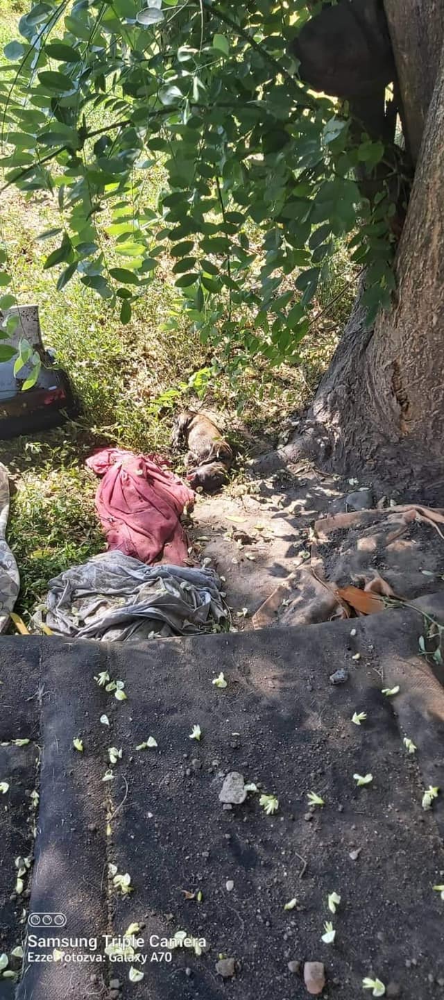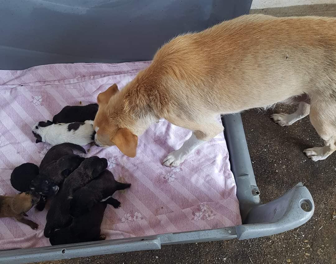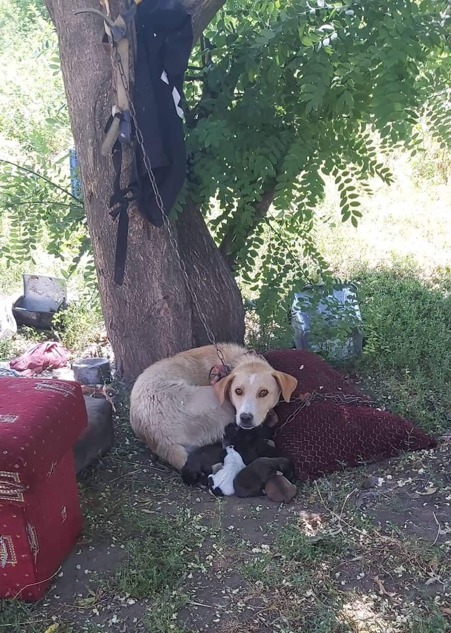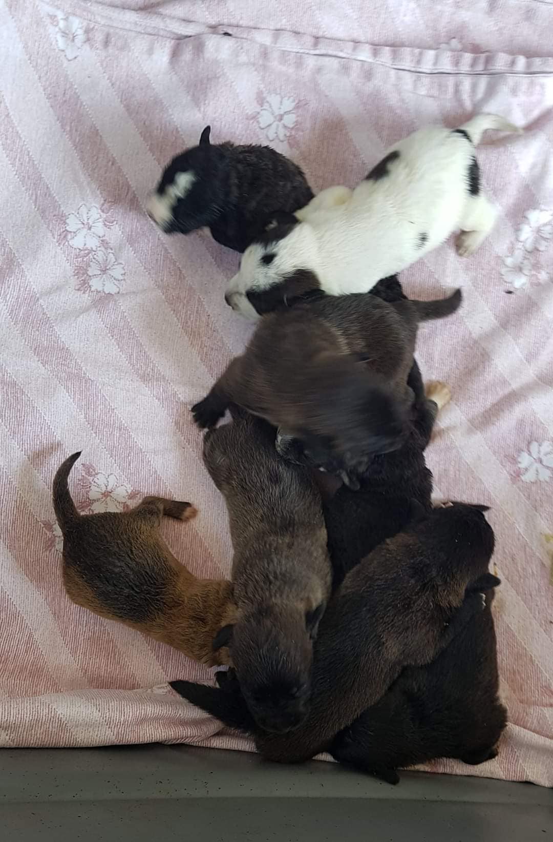Im vorbeifahren entdeckten Hajni und Emese eine Hündin angekettet an einem Baum inmitten von Müll. Neben der Hündin 8 kleine Welpen, die verzweifelt an ihrer Mama nuckelten. Ein paar Meter weiter lag ein neunter toter Welpe…. Die Hündin war völlig kraftlos und ihre Welpen etwa 3 Tage alt. Mindestens so lange muss sie auch dort angekettet gewesen sein. Futter und Wasser gab es nicht. Die Kette schnitt sich bereits in den Hals der Hündin. Auch in Ungarn herrschen teils unerträgliche Temperaturen. Es ist ein wahres Wunder, dass die Familie überlebt hat. Für den neunten Welpen tut es uns unendlich leid… Mama und ihre Welpen sind in unserem Partnertierheim. Wir haben keine Kapazitäten mehr und doch musste Hilfe geleistet werden. Sie wären dort qualvoll eingegangen. An dieser Stelle gibt es viel schlechtes zu sagen, doch was nützt es uns? Bitte unterstützt uns mit den Tierarztkosten, denn die werden von Tag zu Tag mehr. Die Familie muss geimpft, gechipt und entwurmt werden. Und Mama soll kastriert werden wenn die Welpen alt genug sind.