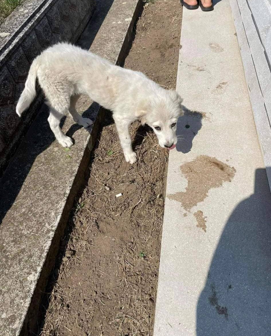 Wir wissen es nicht. Die „kleine“ Hündin ist geschätzt 4 Monate jung und wir mal etwas größer sein.