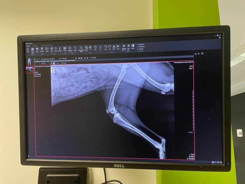 Am darauffolgenden Dienstag waren wir dann nochmal mit Viktoria beim Tierarzt. Ihre Gangart ist auffällig und wir entschieden uns dafür Röntgenaufnahmen von der Hüfte und dem rechten Hinterbein machen zu lassen. Aufgrund mangelnder Nährstoffe oder erblich bedingt ist Vikis Hüfte nicht in der besten Form. Zwar sind keine Entzündungen in den Gelenken vorhanden, doch besteht das Risiko, dass sich HD entwickeln könnte. Ein Riss im Knochen ihres rechten Hinterbeins ist ebenfalls aufgefallen. Dieser regeneriert sich jedoch bereits von allein. Nun heißt es für Viki Schonhaltung und weiterer Muskelaufbau.