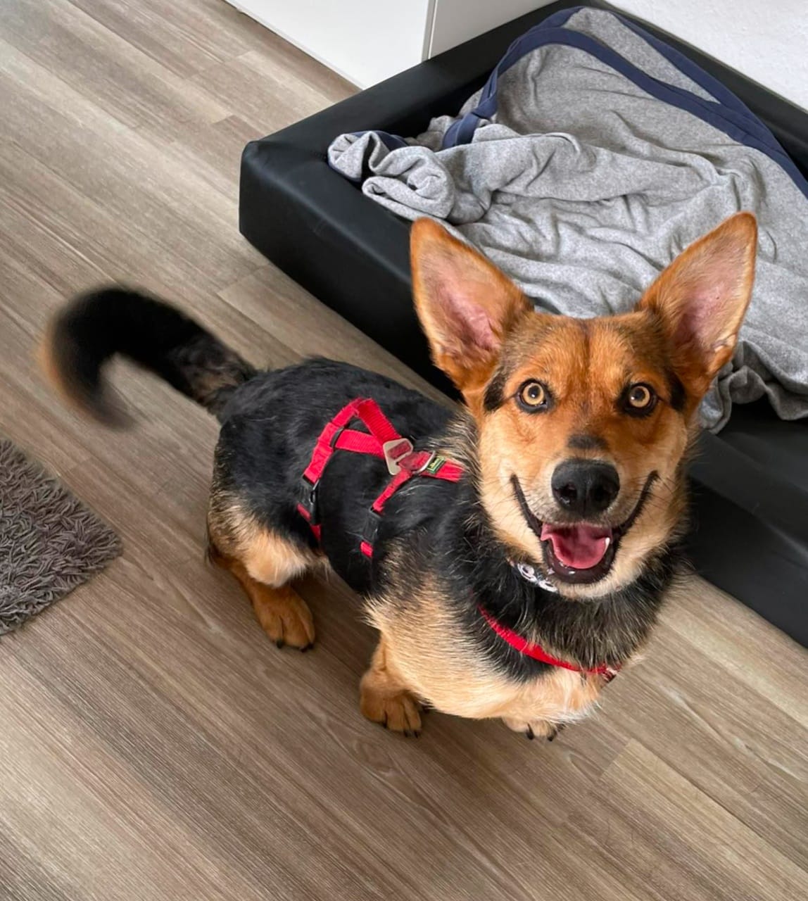 Unser überdurchschnittlich langer und äußerst lustiger Corgie Verschnitt Blanka darf auch ENDLICH komplett Fuß, äh Pfote, fassen!