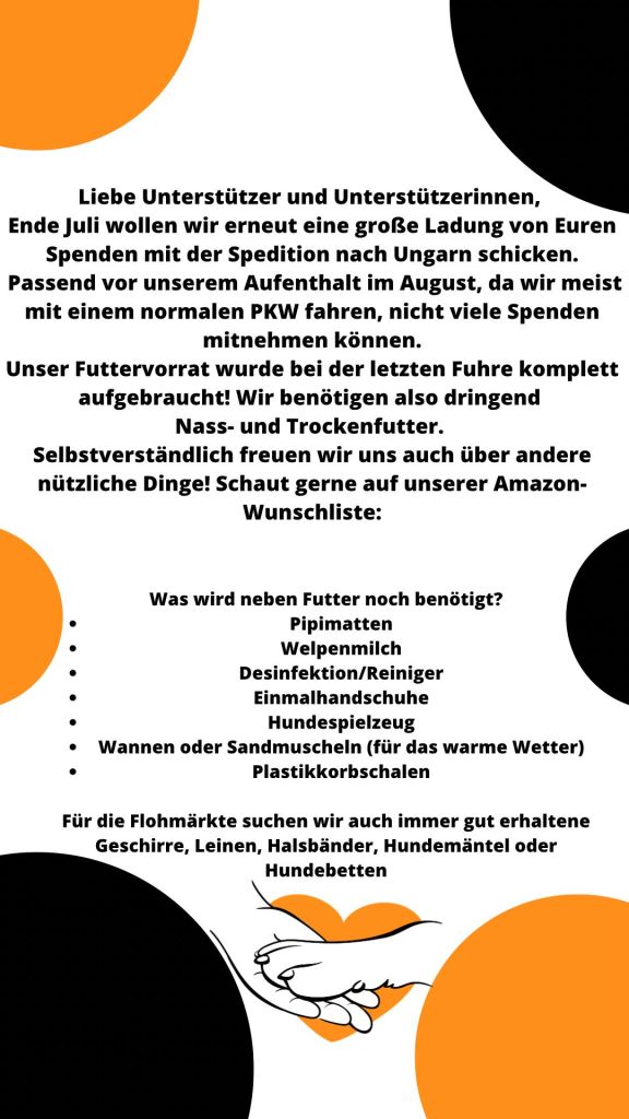Im Link findet ihr unsere Amazon Wunschliste, jedoch nehmen wir natürlich auch gebrauchte, gut erhaltene Spenden entgegen!