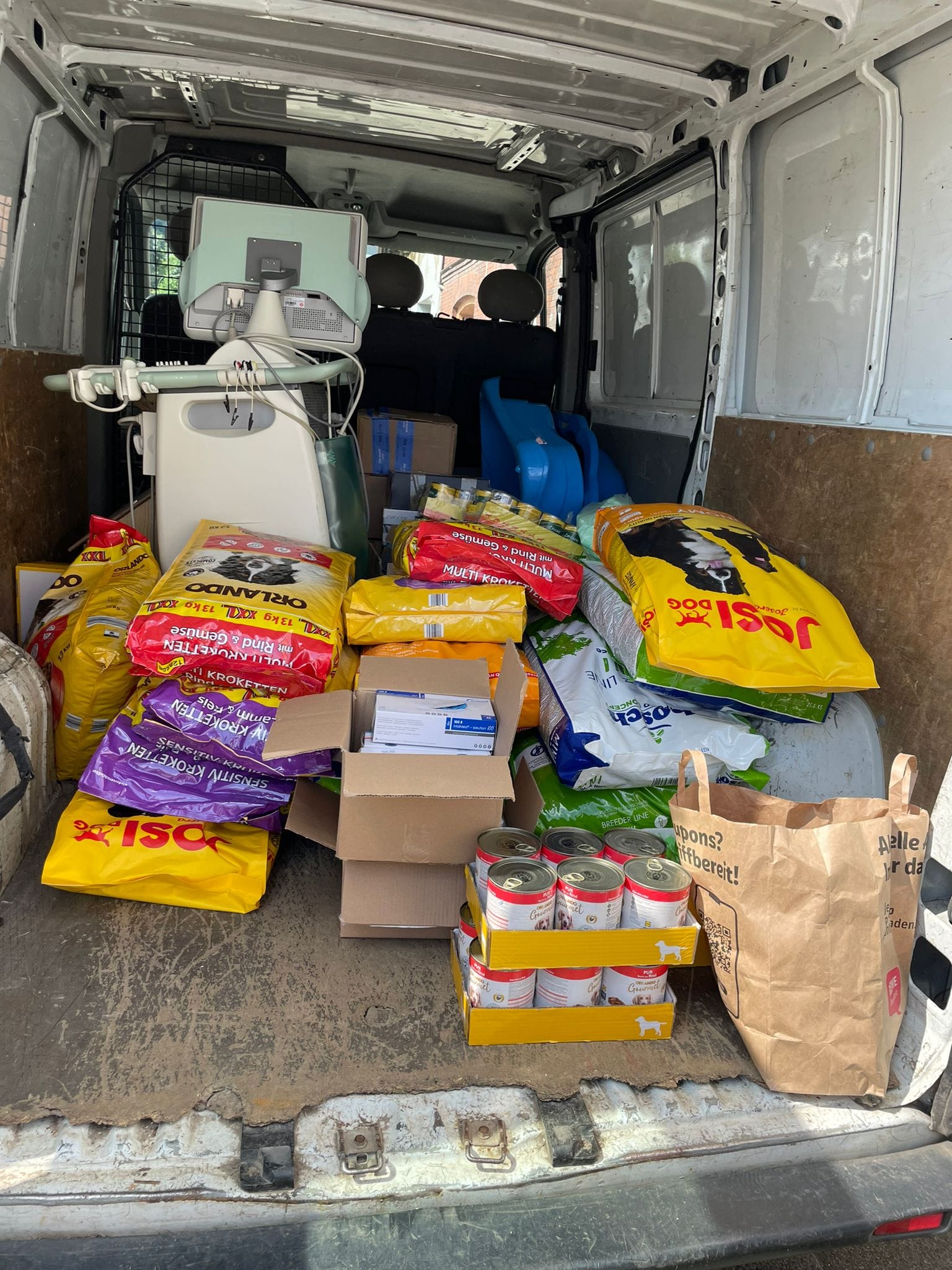 Vergangene Tage sind wir mit einem komplett gefüllten Transporter mit euren Spenden zur Spedition gefahren und konnten 5 Paletten packen.