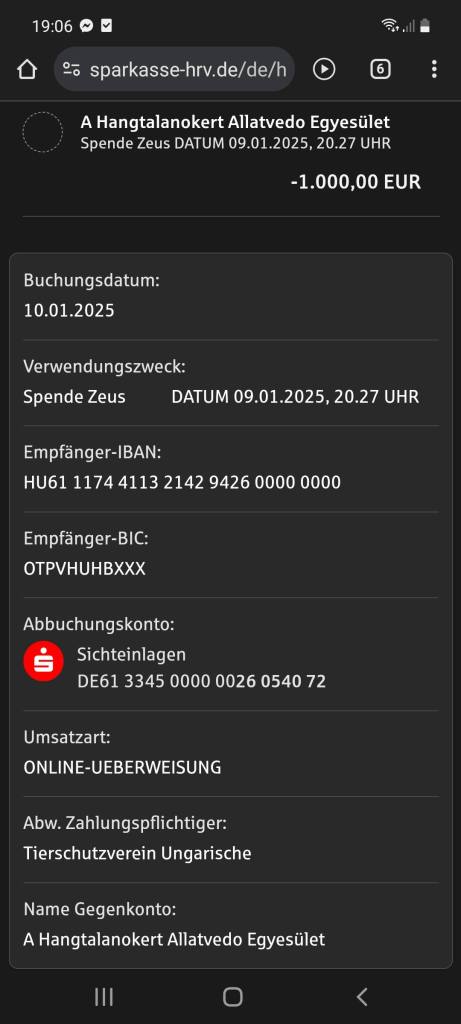 Tierschutzverein Ungarische Hundeseelen DE61 3345 0000 0026 0540 72