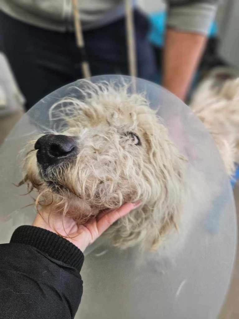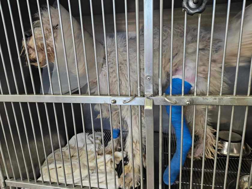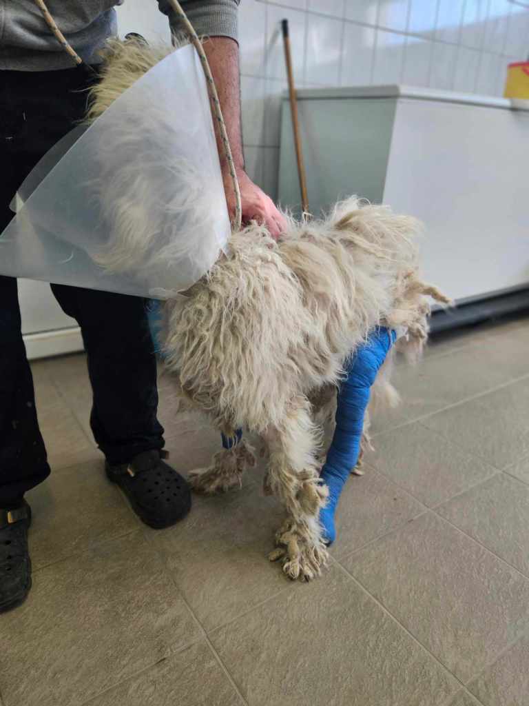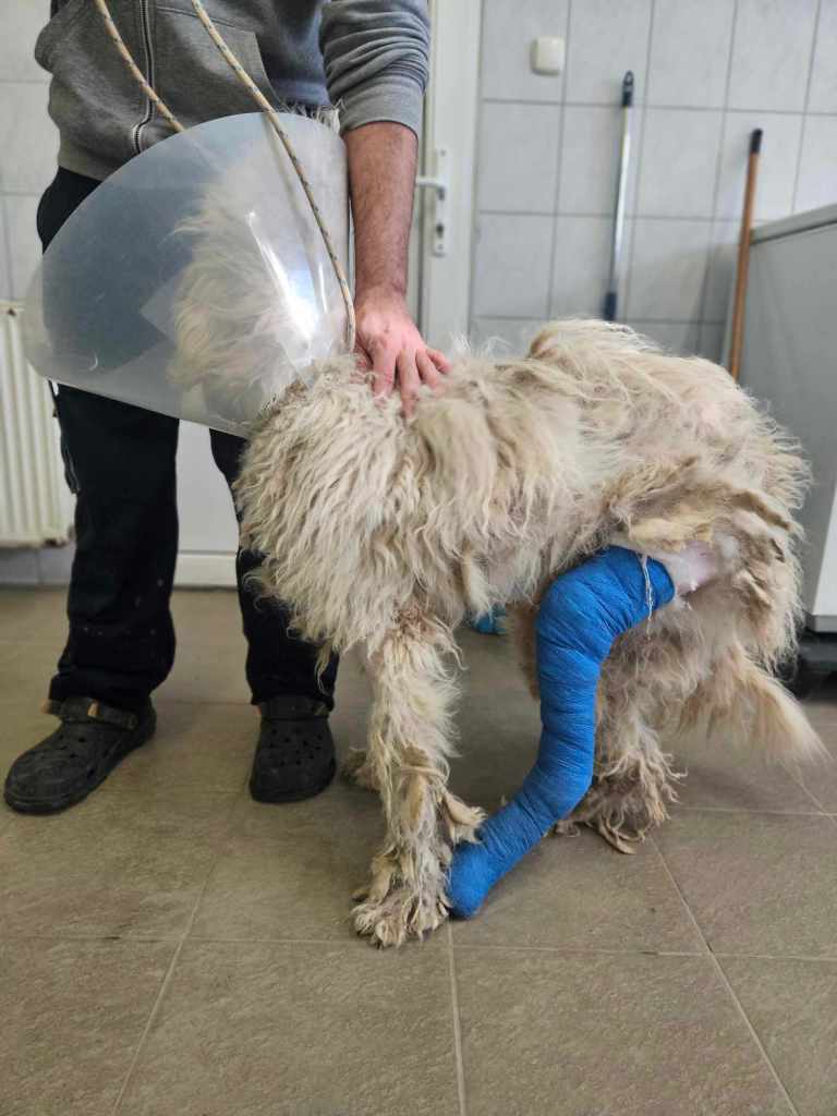 Zsanett war heute zu Besuch in der Tierklinik. Morgen darf Zeus ins Tierheim einziehen. Ihm geht es weiterhin gut. Er freut sich über jeden Menschen und singt Konzerte, weil er natürlich nicht so gerne in einer Box sitzen möchte. Die Schrauben sorgen von nun an dafür, dass der Knochen wieder in seine natürliche Position geschoben wird und Zeus schmerzfrei laufen kann. Natürlich heißt es nun erstmal einige Zeit Schonprogramm und anschließend Muskelaufbau. Für diesen Zweck suchen wir eine Pflegestelle oder Endstelle, sobald Zeus fit genug für eine Reise ist.