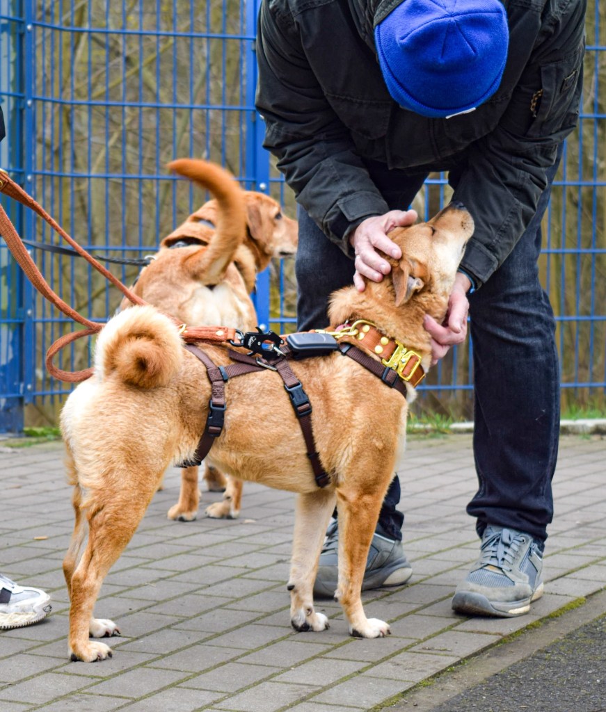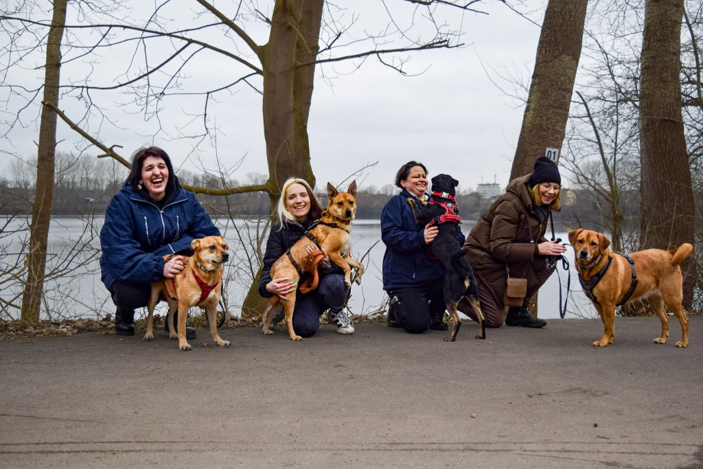 Die Familie hatte damals eine schlimme Zeit hinter sich. Kessy wurde mit ihren 6 Welpen an einem abgelegenen Ort ausgesetzt, wo sie mehrere Tage herum irrten und aus der Not heraus das sechste Geschwisterchen, welches starb, fressen mussten, um zu überleben…. Mama Kessy war damals absolut überfordert mit ihren Junghunden, vor allem umso größer sie wurden. Vor 2,5 Jahren wurde Kessy adoptert. Vor fast 2 Jahren fand Liza ihr Zuhause, welches ursprünglich als Pflegestelle gedacht war, die süße Maus allerdings nicht ziehen lassen konnte. Im Dezember 2024 kamen die Schwestern Lexi und Lita hier an. Sie warteten fast 3 Jahre im Tierheim! Lexi, die braune Hündin im roten Geschirr wartet übrigens in Ratingen auf ein festes Zuhause!
