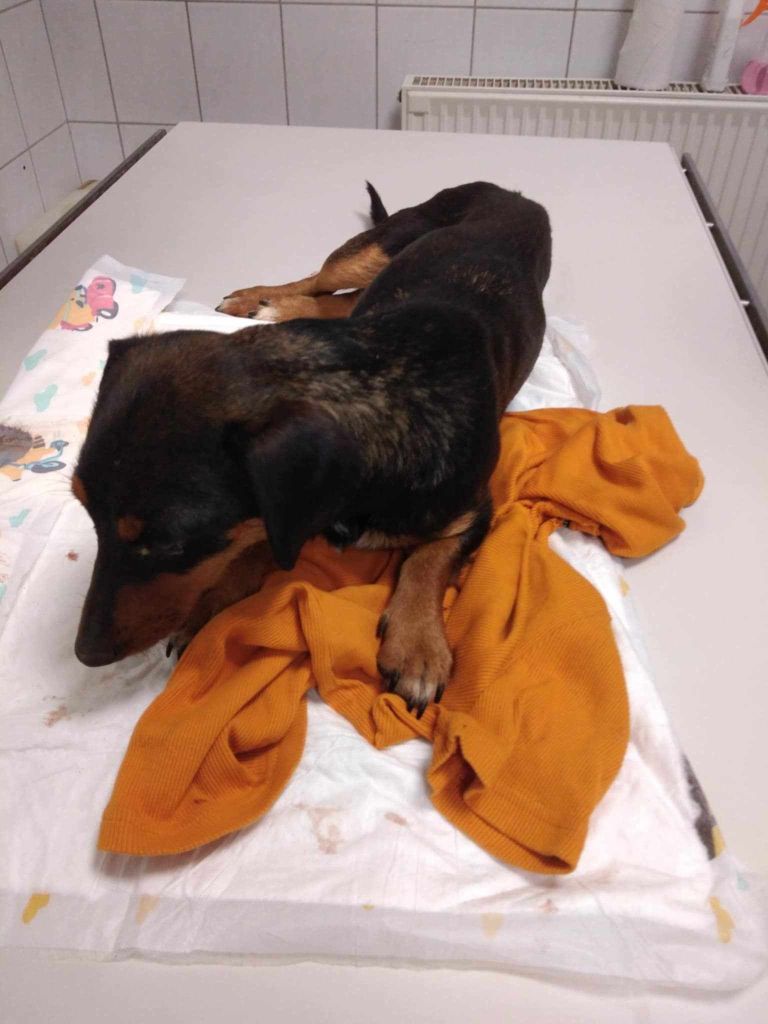 Gestern wurde die Hündin Bambusz blutend auf der Straße gefunden. Unweit von ihr entfernt lagen Welpen und zunächst wurde vermutet, dass diese auch zu ihr gehören. Die Hündin wurde umgehend unserer Tierärztin vorgestellt und nach ersten Untersuchungen und einem Blutbild stand feste, dass sie sehr schlechte Nieren, Leber- und Bauchspeicheldrüsenwerte hat. Es wurde von einer Vergiftung ausgegangen, also wurde sie in die Tierklinik transportiert. Auch dort wurden nochmals Untersuchungen gemacht und unter anderem ein Ultraschall durchgeführt. Dieser war ergebnislos. Der Hündin ging es sehr schlecht und sie verbrachte die Nacht in der Klinik.
