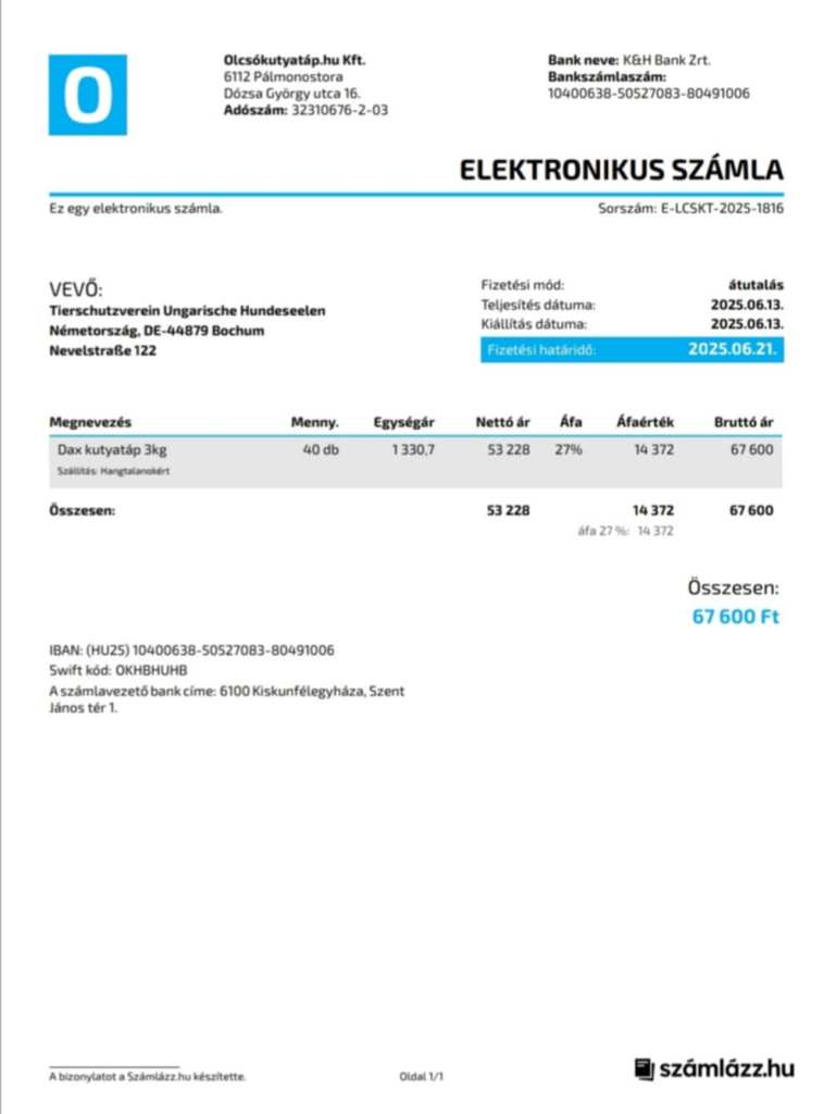 Im Anhang die Rechnungen und ein Überweisungsbeleg für das Futter ![]()