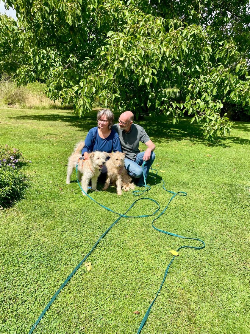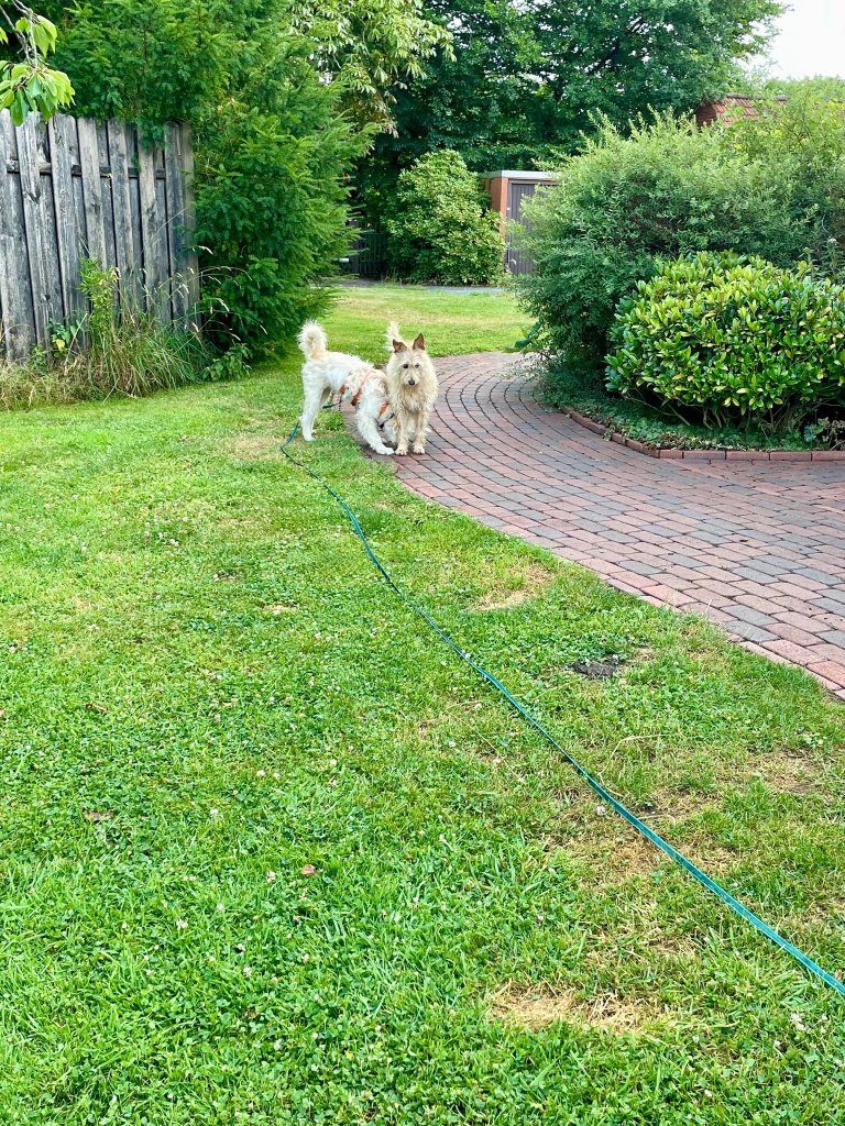 Shelly und ihre Hundefreundin fordern sich bereits zum spielen auf. Das große Grundstück ist für unsere junge, aktive Frohnatur natürlich ein besonderer Obolus.