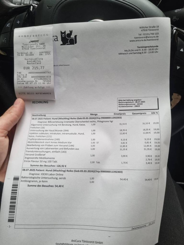 Wir sind dankbar über Hinweise und jede Form von Unterstützung! Vorweg möchten wir sagen, dass es Roiko Stand heute wieder besser geht und die Wunde nach dem operativen Eingriff besser verheilt ist ![]()