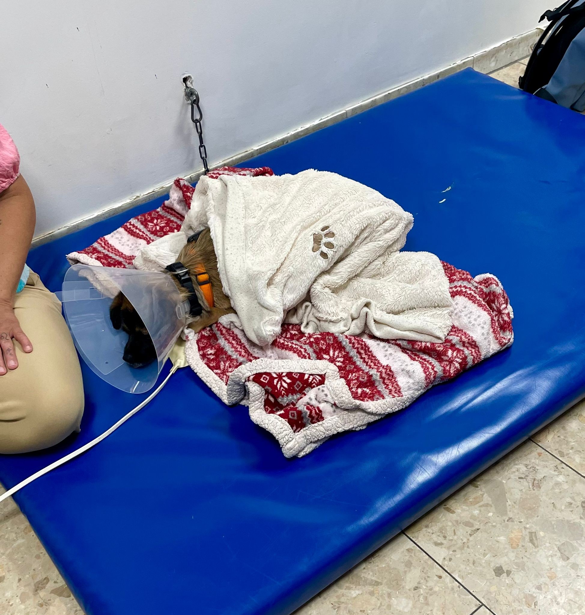 Leider hatte unsere Pflegehündin Fanni eine längere Pechsträhne. Bei Fannii wurde ein Leistenbruch diagnostiziert, der dringend behoben werden musste, da er andernfalls irgendwann lebensgefährlich geworden wäre. Um sie in Narkose legen zu können, ließen wir nochmal ein Blutbild machen und auf Mittelmeerkrankheiten testen. Leider ergaben sich hierbei kritische Werte einer Babesiose. Die OP konnte also nicht erfolgen, weil sie aufgrund der Gefahr einer Blutarmut für eine Narkose nicht stabil genug war. Fanni wurde also über insgesamt 4 Wochen 2x mit Carbesia behandelt, anschließend gab es ein wiederholtes Blutbild, Gott sei Dank negativ. Fix wurde ein OP Termin vereinbart und der Eingriff konnte am Montag erfolgen, Die OP lief glatt, ohne Komplikationen und Fanni erholt sich gerade ![]()
