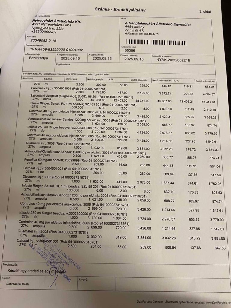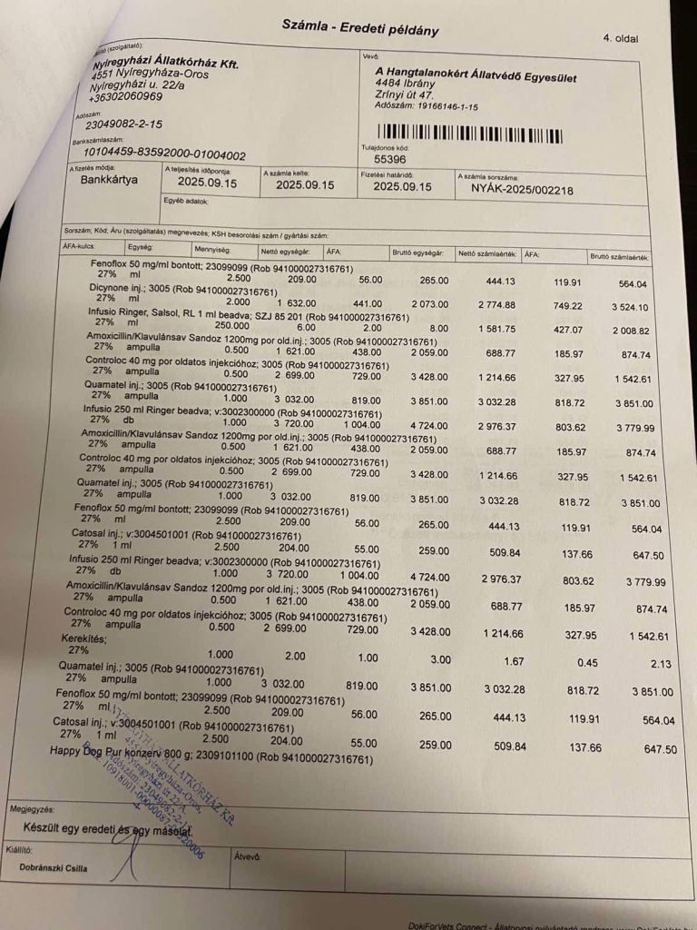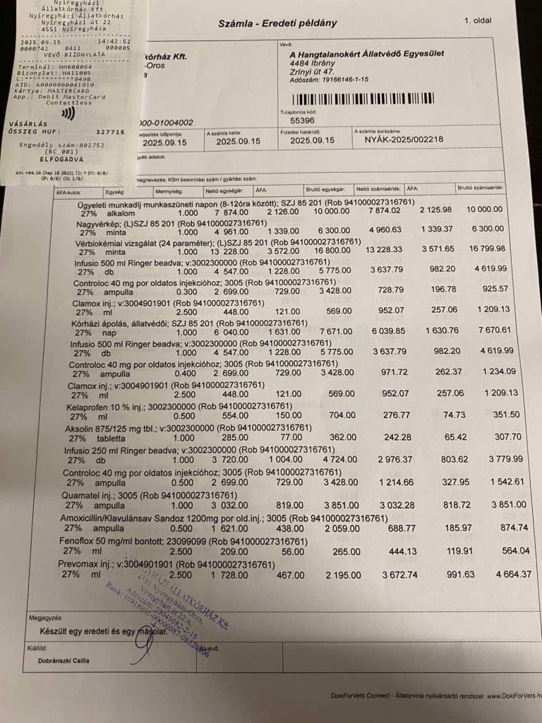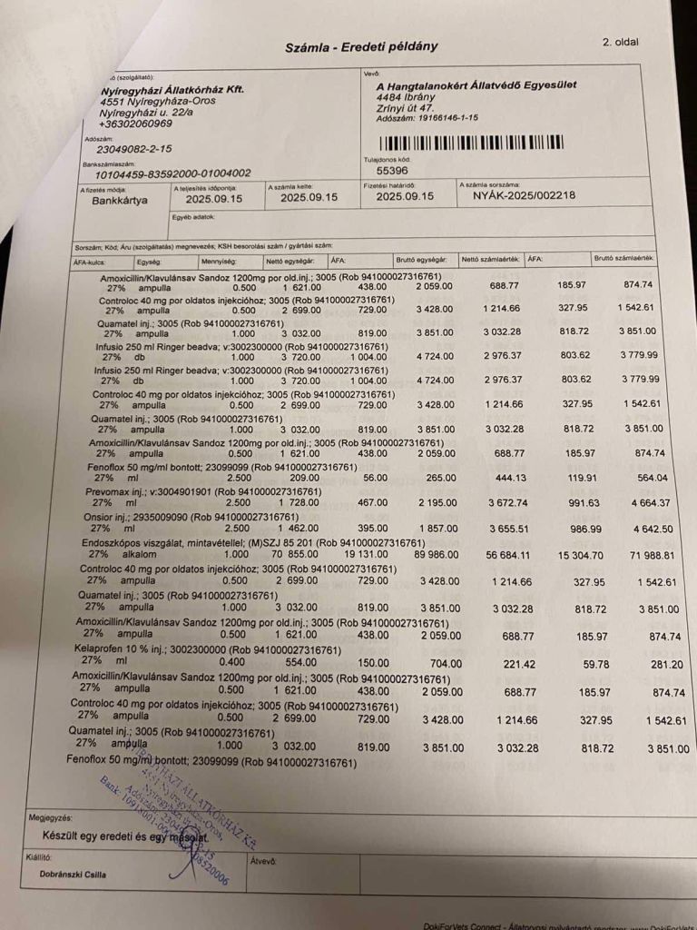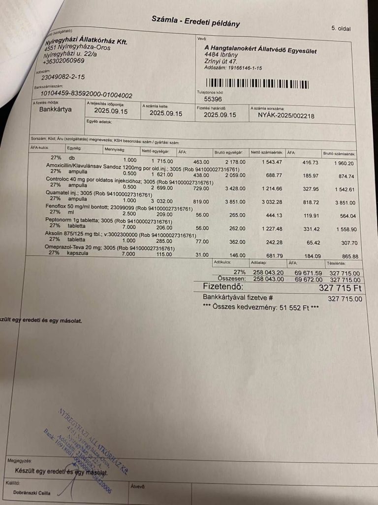 Rob hat zwar einen tollen Paten (Danke an Sascha!), aber die entstandenen Kosten sind durch die Patenschaft bei weitem nicht gedeckt. Es sind Kosten in Höhe von 998.000 Forint, also etwa 2550€, entstanden.