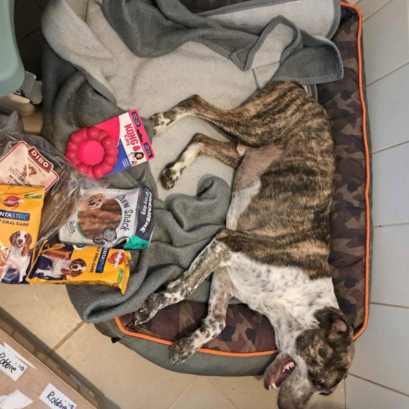 Seine Nase sieht schon wieder deutlich besser aus, aber die Folgen sind ihm eindeutig anzusehen und für Rob braucht es eine ganze Weile bis er wieder auf die Beine kommt. Rob hat zwischenzeitlich ein Päckchen von unserer treuen Unterstützerin Kerstin bekommen. Danke dafür