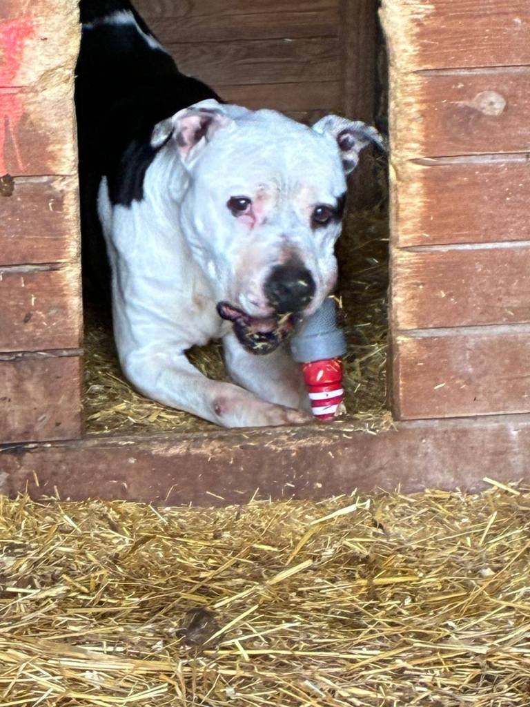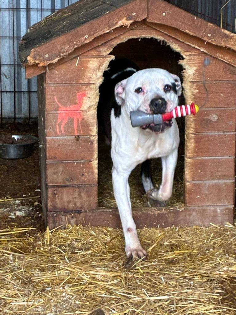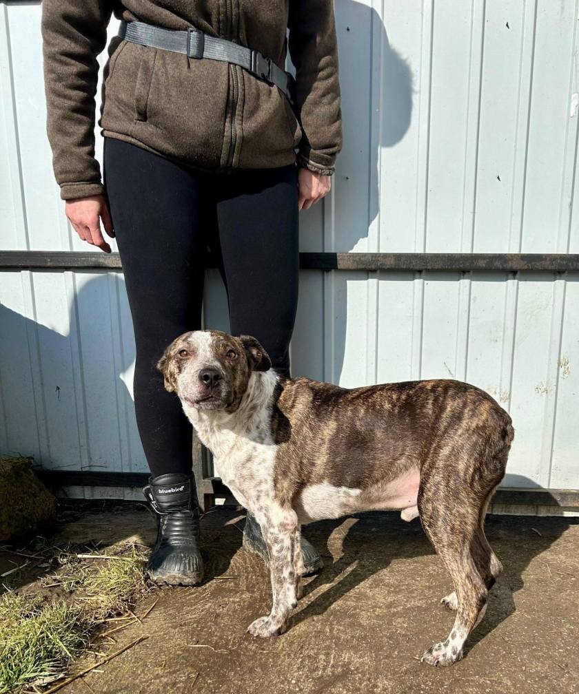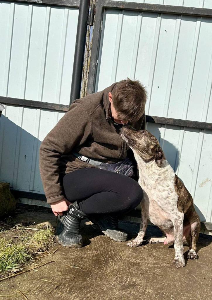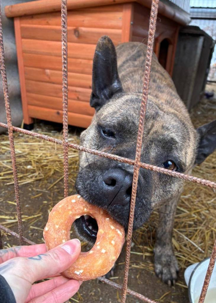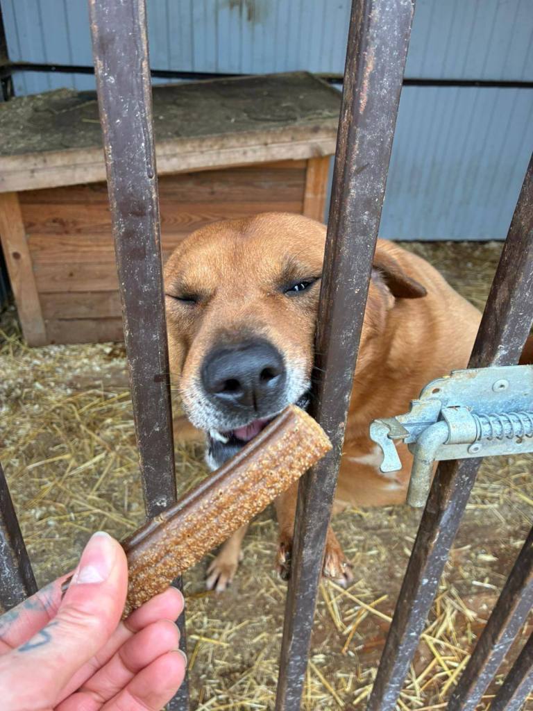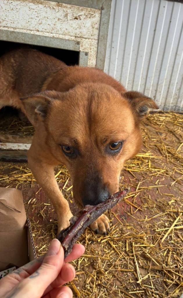 Auch Brownie (so tauften wir sie gemeinschaftlich) ist nun Bewohnerin des Tierheims. Sie lebte unter schrecklichen Bedingungen bei einer völlig uneinsichtigen Besitzerin. Viel zu dünn, angekettet an eine rostige Tonne, inmitten von Hühnerknochen und Müll. Die Mausi ist erst 1 Jahr jung. Eine ebenfalls wirklich tolle Hündin, die aktuell sehr viel schläft und den Stress, dem sie ausharren musste, nun verarbeitet ![]()