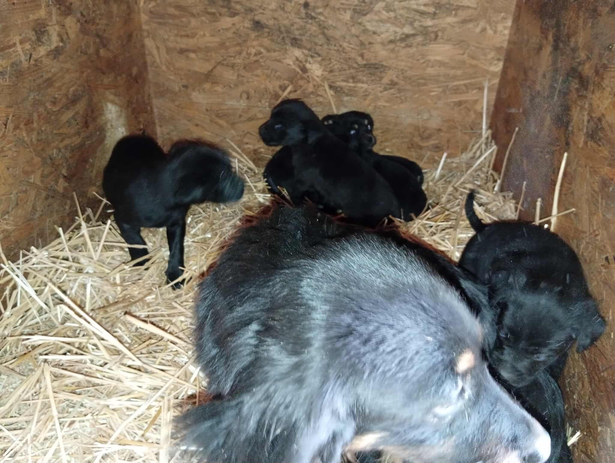 Vor 1,5 Wochen, als wir vor Ort waren, meldete sich eine Frau mit Bildmaterial von dieser Hundefamilie. Sie fand die Mama mit ihren 6 Welpen zwischen Strohballen. Die Familie schien sich dort schon einige Tage aufzuhalten. Vielleicht bekam Mama Stella ihre Welpen dort, vielleicht wurden sie gemeinsam an diesem Ort ausgesetzt. Die Finderin hatte Sorge, dass die Hunde verletzt werden könnten, da die Ballen bald bewegt werden. Sie selber konnte die Familie nicht aufnehmen, kam aber jeden Tag her und füttere sie. Das große Problem vor dem wir standen: im Tierheim war keinerlei Platz für eine weitere Hundefamilie. Erst die Tage zuvor wurden Hunde neu vergesellschaftet und Zwinger umgestellt, um Platz für neue Hunde zu schaffen. Das Limit war wieder einmal erreicht. Ein paar Tage später wurde ein Zwinger frei. Die Mädels fuhren los und wollten die Familie sichern. Mama Stella ergriff die Flucht und ließ sich nicht mehr blicken. Also wurde eine Lebendfalle aufgestellt. Doch heute kam dann die Nachricht, dass Stella von der Finderin, die sich über die ganzen Tage um die Hunde kümmerte, eingefangen werden konnte. Was ein Glück ![]()