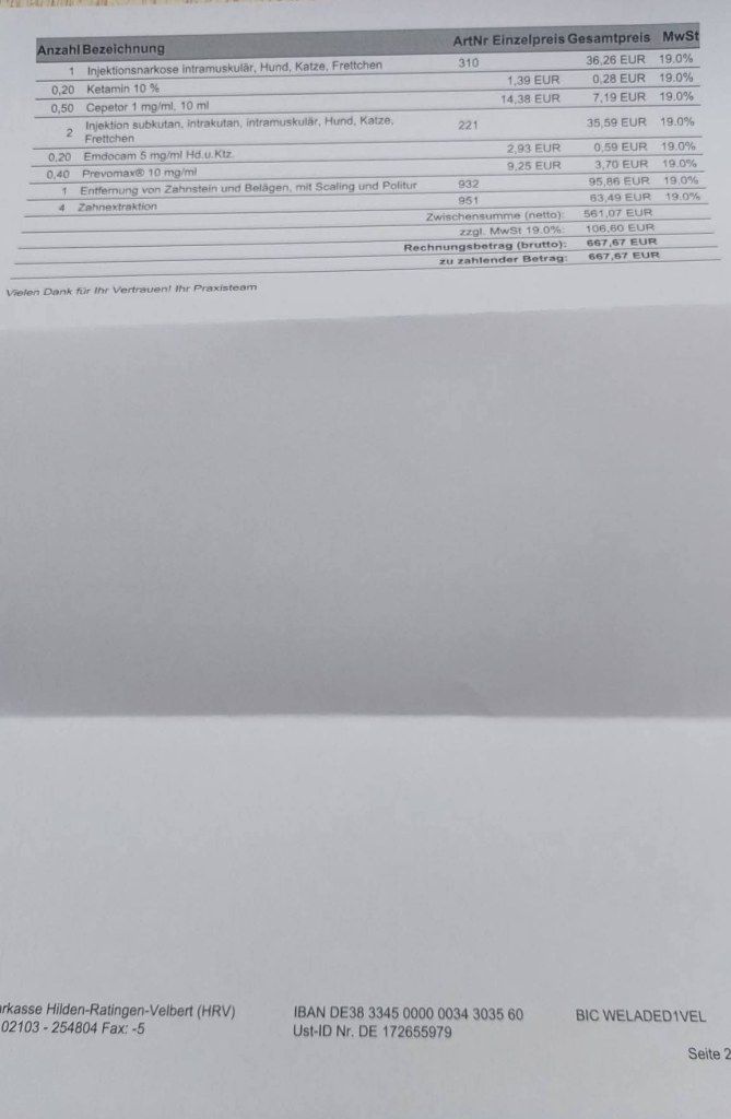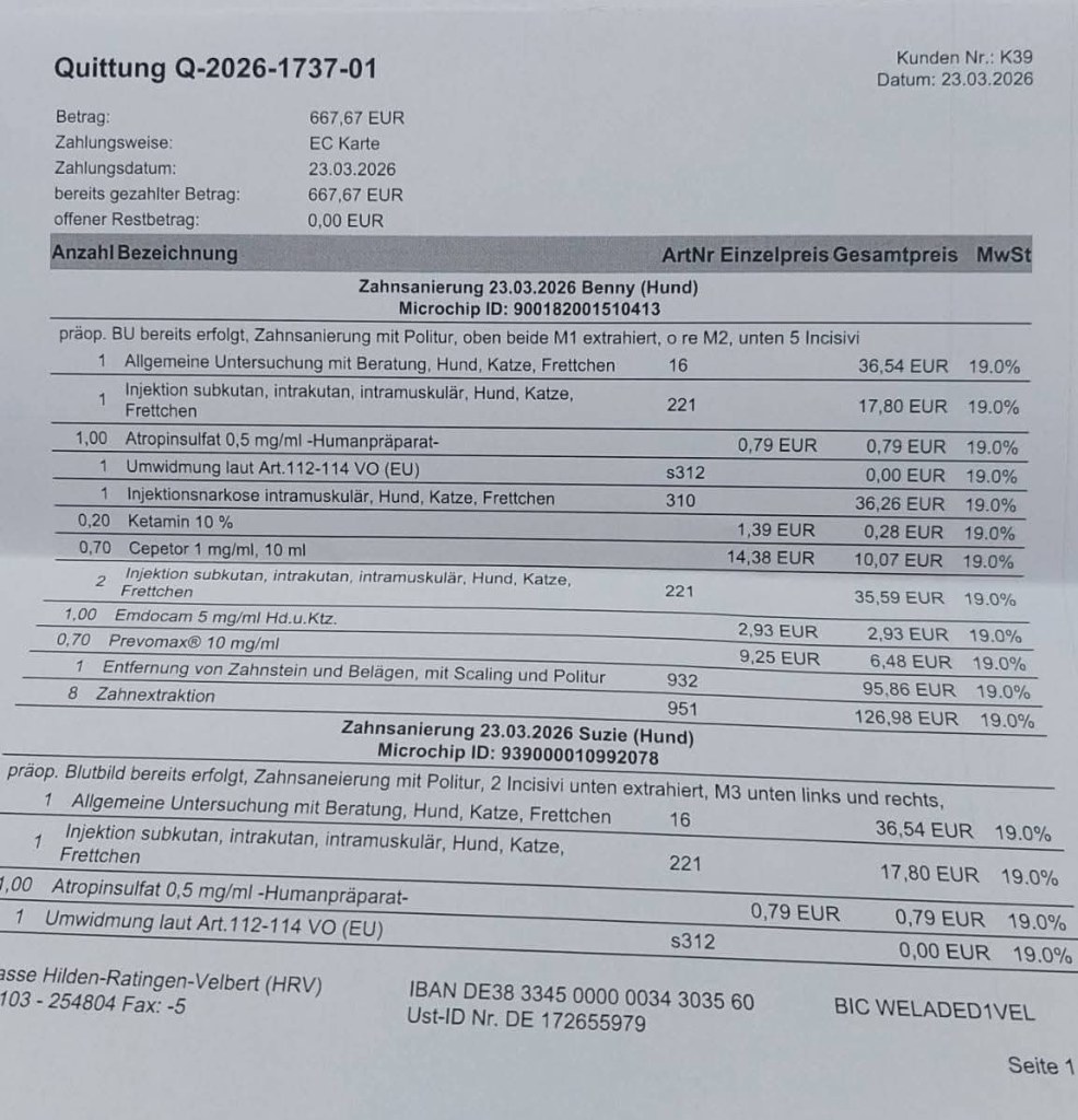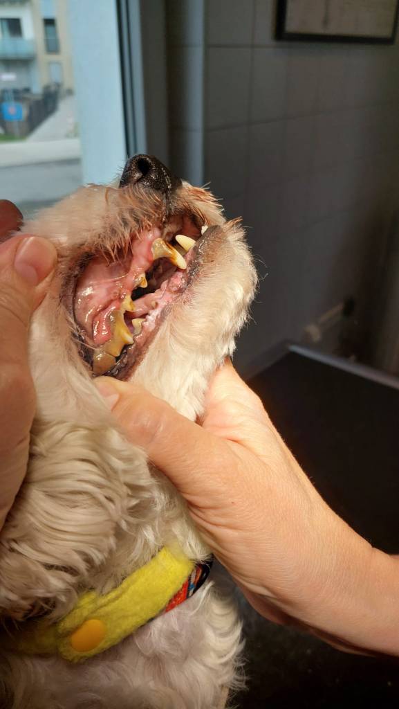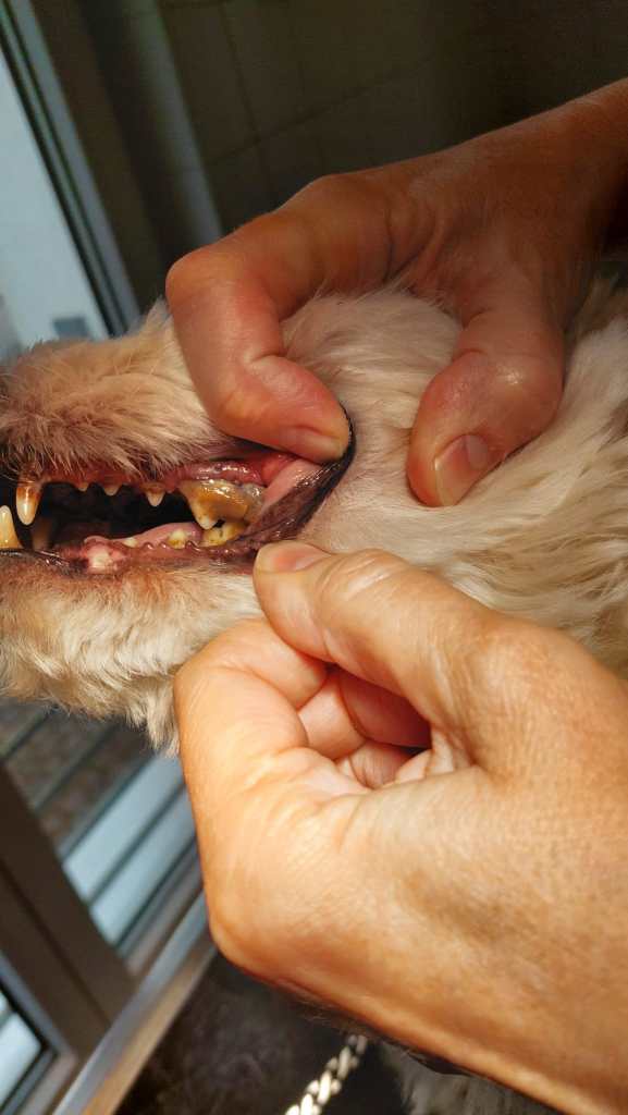2) Unser Senioren Pärchen Béni und Suzy, die ebenfalls in Pflege leben, brauchten beide dringend eine Zahnsanierung. Bei Béni lag bereits der Nerv frei, wodurch er Schmerzen hatte. Beide Hunde benötigten im Vorfeld ein Blutbild, um zu schauen, ob sie fit genug für die Narkose sind. Zudem stand bei Béni der Verdacht einer Epilepsie im Raum.