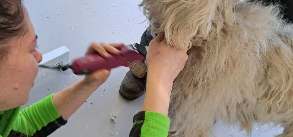 Heute war Zeus beim Tierarzt. Zunächst wurde der Karabiner aus seinem Hals entfernt, alles gründlich desinfiziert und zugenäht Für Zeus ein wirklich befreiendes Gefühl! Die