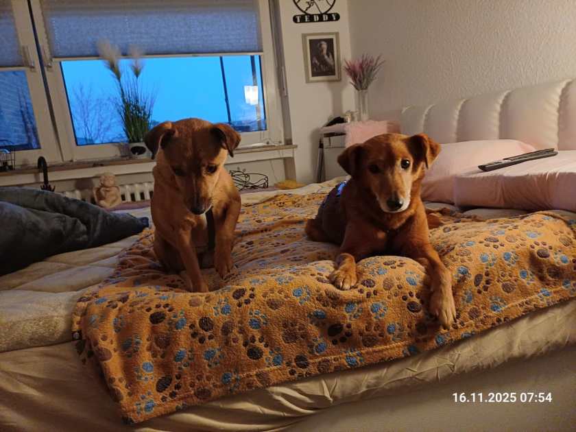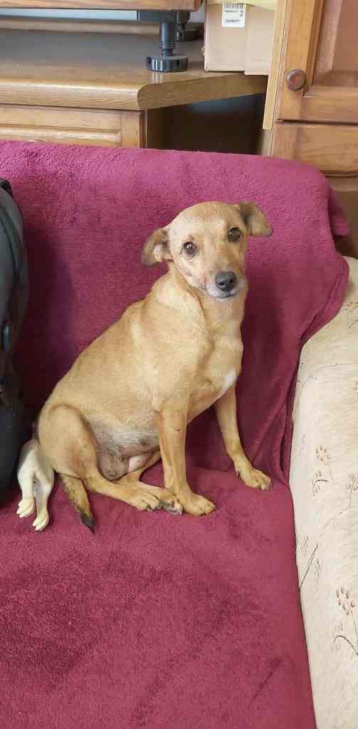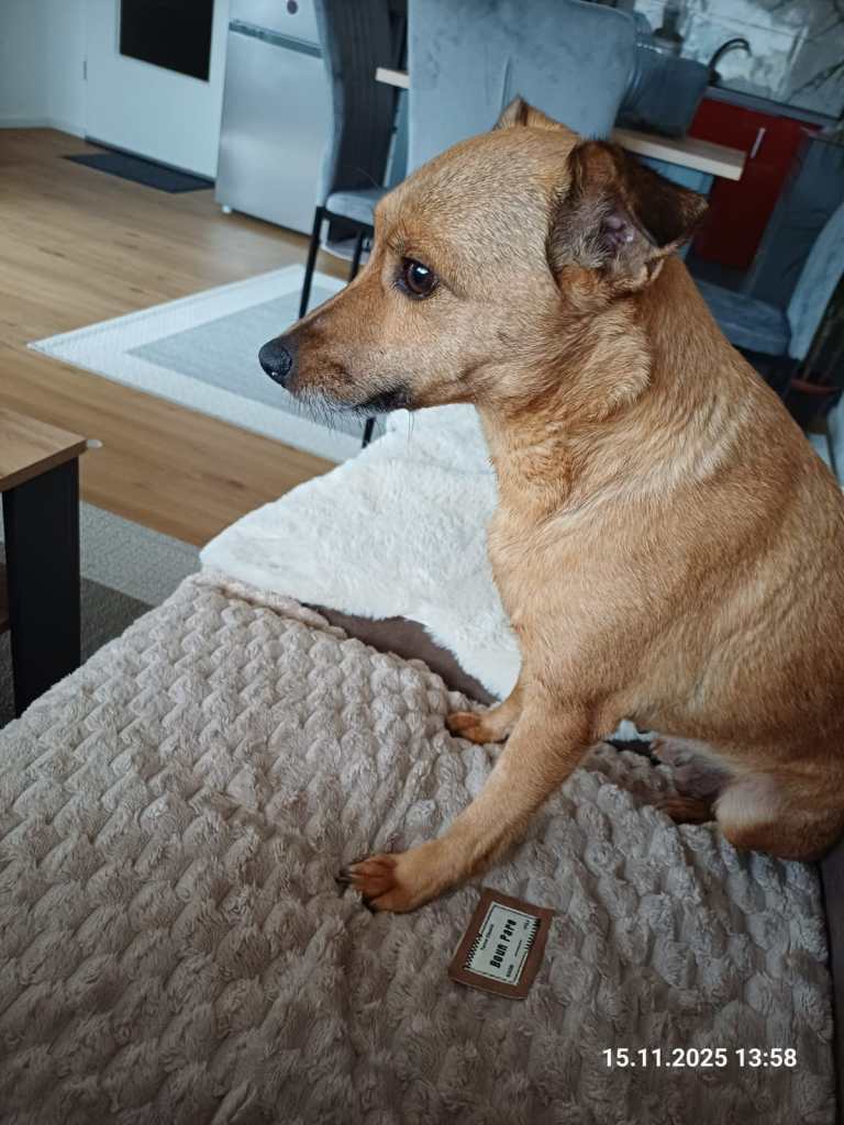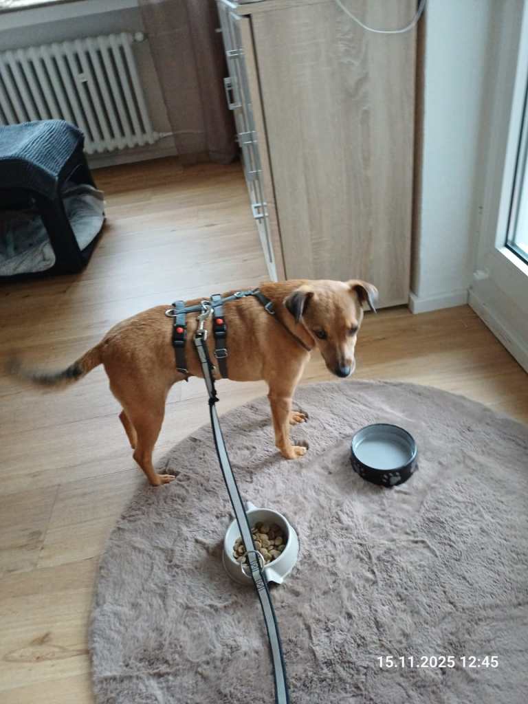 Elinor ist eine ruhige Vertreterin, die sich Menschen gegenüber aufgeschlossen und nett zeig und sehr gerne schmust . In ihrer Pflegestelle lebt sie zusammen mit einem anderen Hund, mit dem sie sich arrangiert, jedoch kein großes Interesse an ihm zeigt. Auto fahren kennt Elinor bereits und ist stubenrein. Draußen an der Leine läuft die Hündin gut mit. Elinor kann derzeit noch nicht alleine bleiben und sucht Menschen die ihr helfen dahingehend entspannter zu werden und die Verlustangst abzulegen. Ein Zuhause bei einer Person oder einem Pärchen mit Hundeerfahrung, bevorzugt ohne andere Hunde, wäre ideal. Elinor wäre zu gerne der goldene Fokus ihrer neuen Menschen. Für die Hündin wäre es ideal jemanden zu haben, der viel Zuhause ist oder die Hündin mit in den Beruf nehmen kann. Elinor ist kastriert, geimpft und gechipt. Sie wiegt 8,6 Kilo und wurde kürzlich negativ auf Babesien und Herwürmer getestet.
