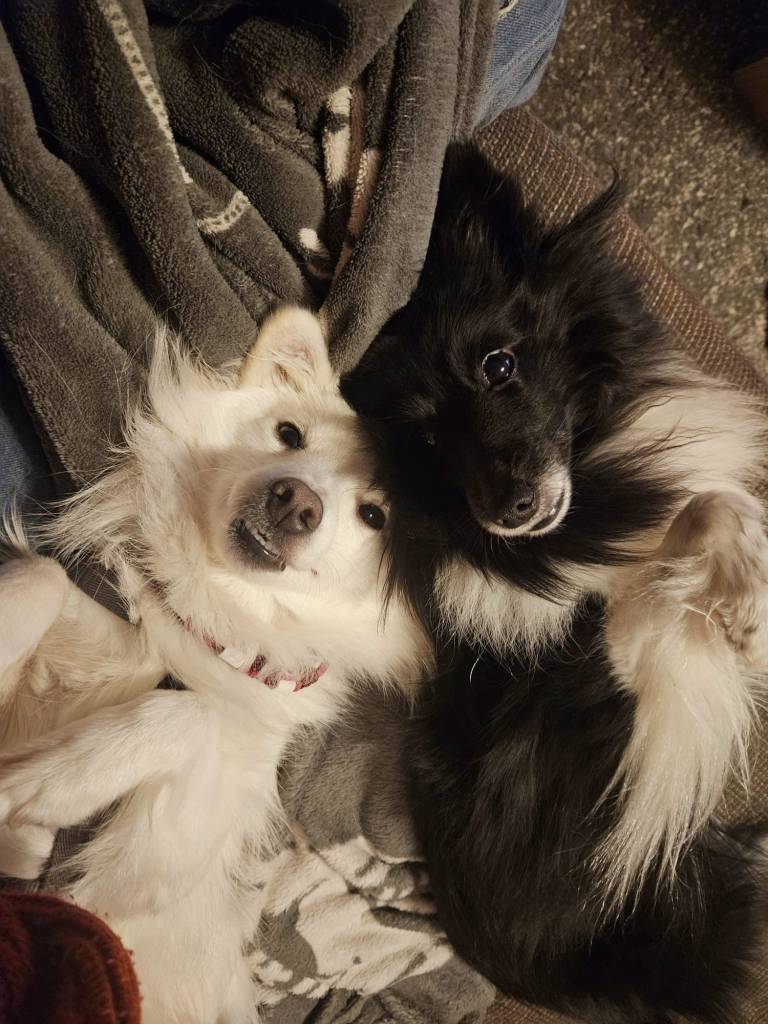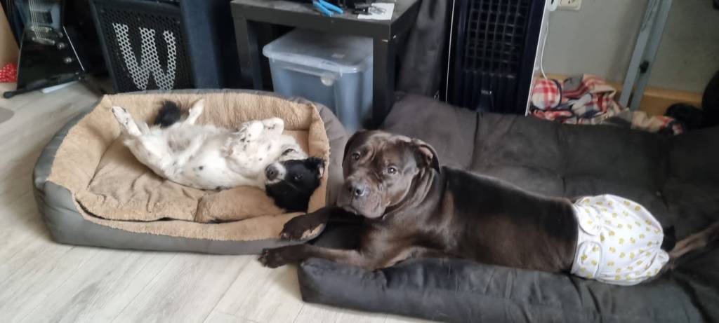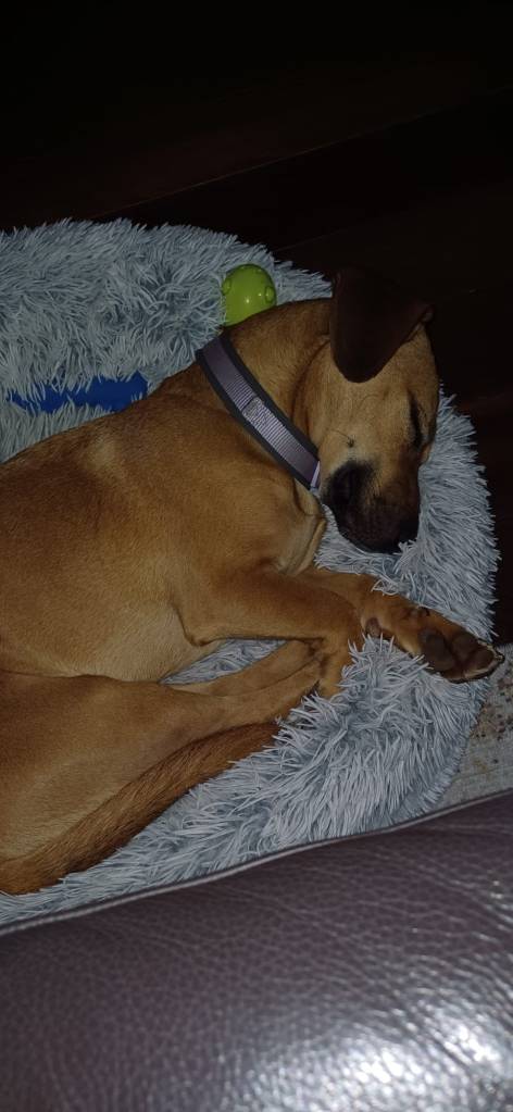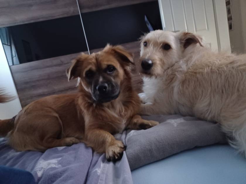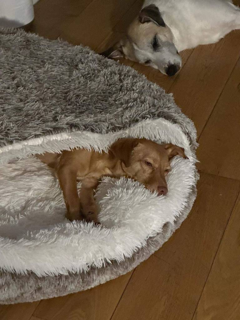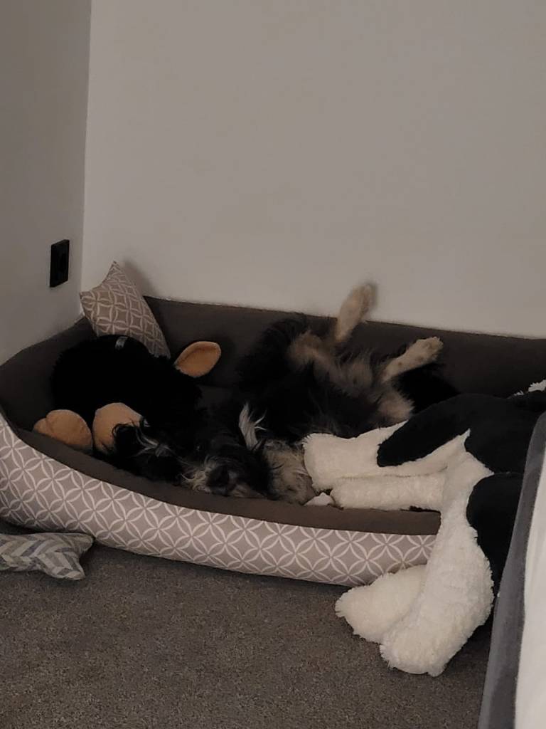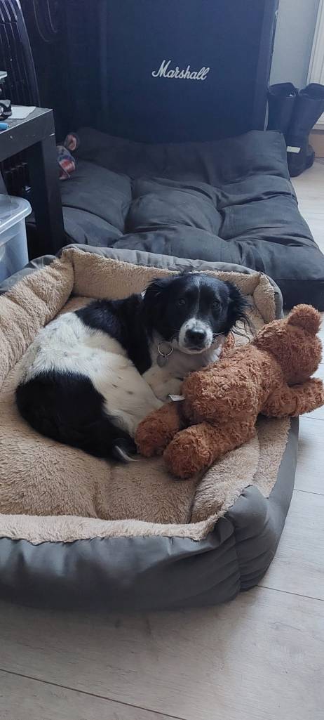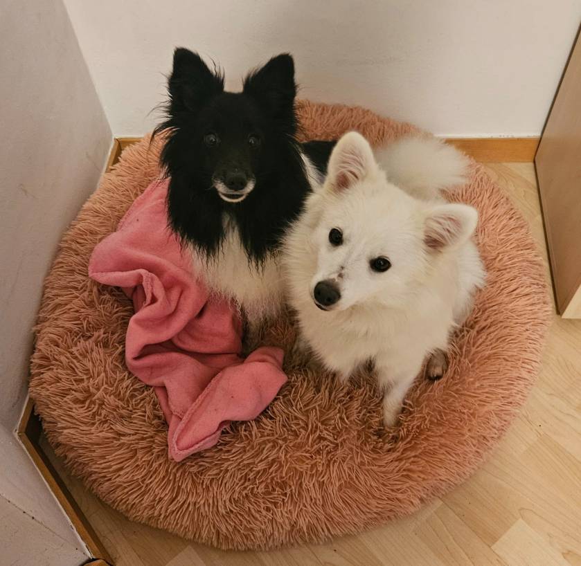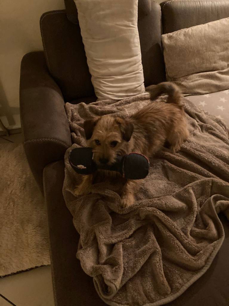 Ich liiiebe es aber auch, mit meinen Schwestern zu toben, (Mama sagt immer, wir drehen die Wohnung auf links). Aber am liebsten liegen wir zu 4. im Bett, und kuscheln. Ich lerne jeden Tag, neue Sachen. Habe schon Hunde-Kumpels, und will hier nie wieder weg…
