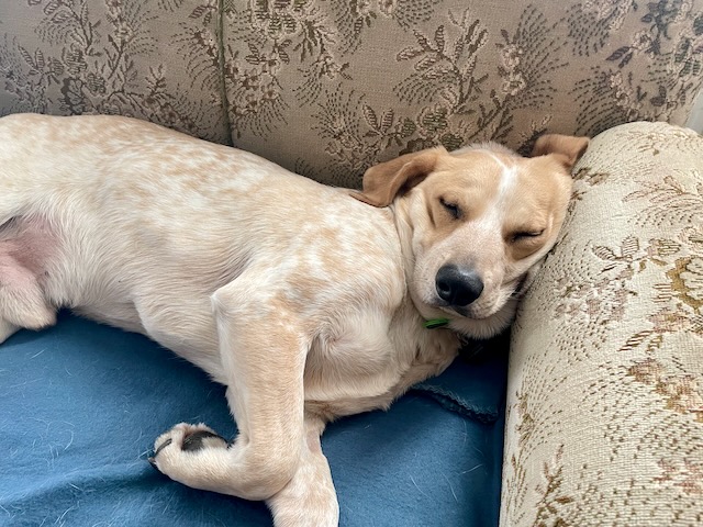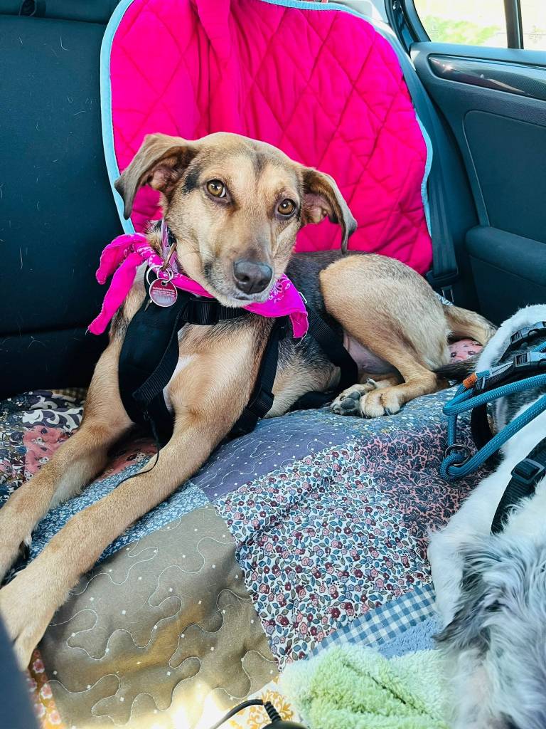 Kessy lebt seit Oktober 2022 bei ihren Menschen und reiste als Herzwurm positiver Hund aus.