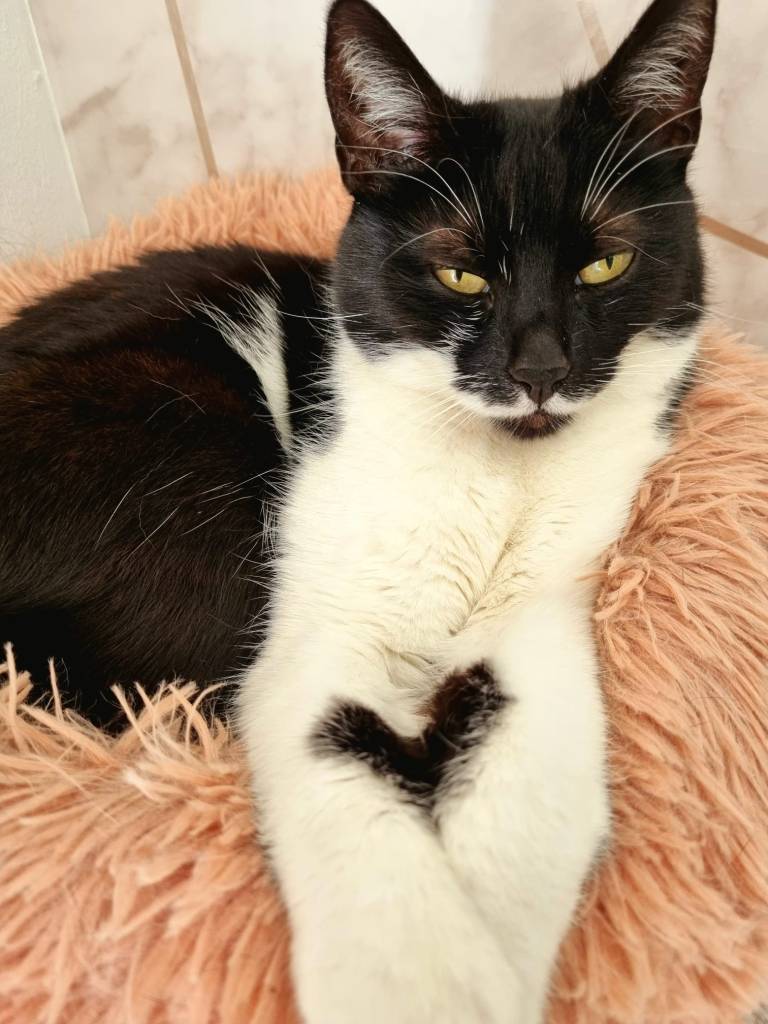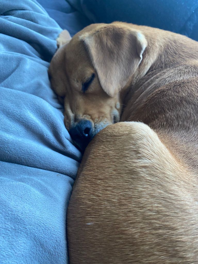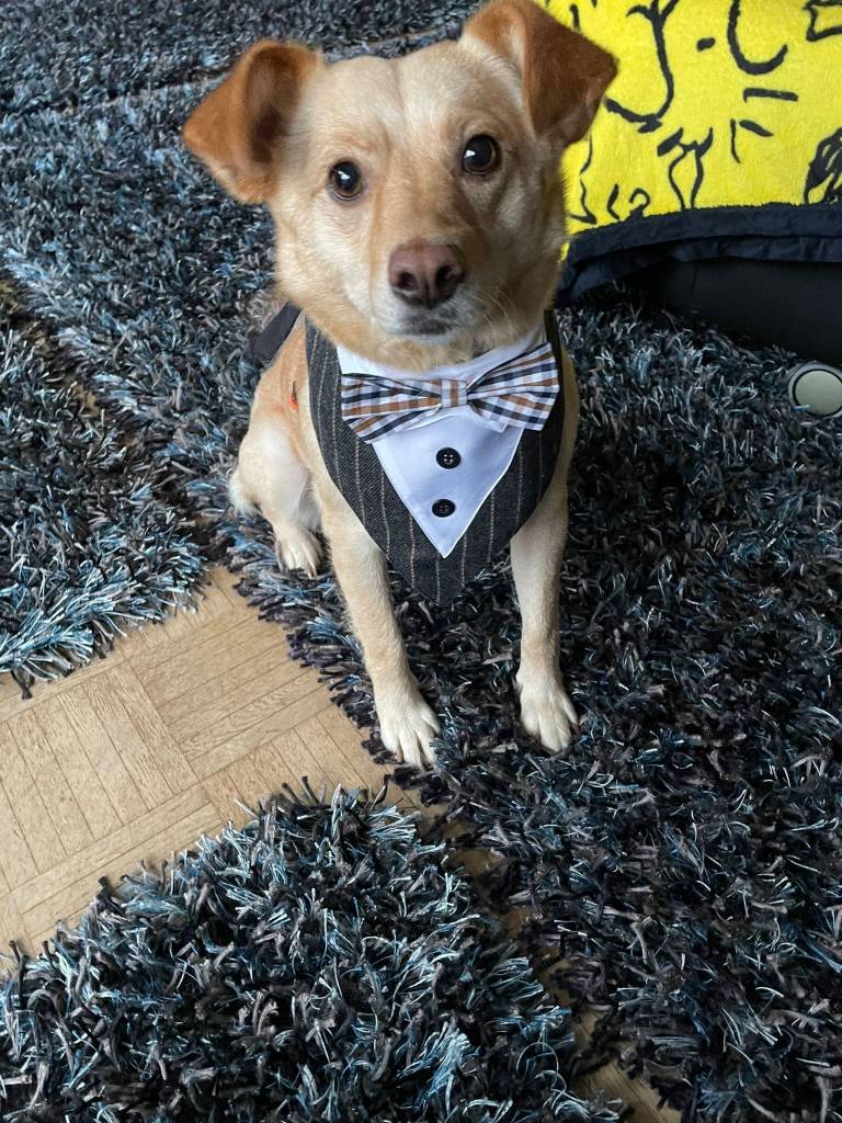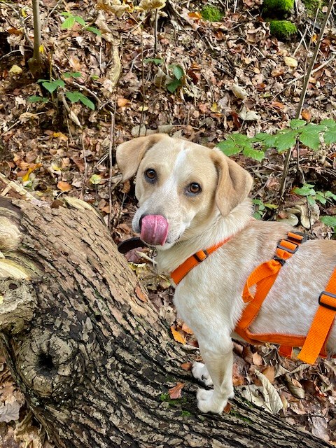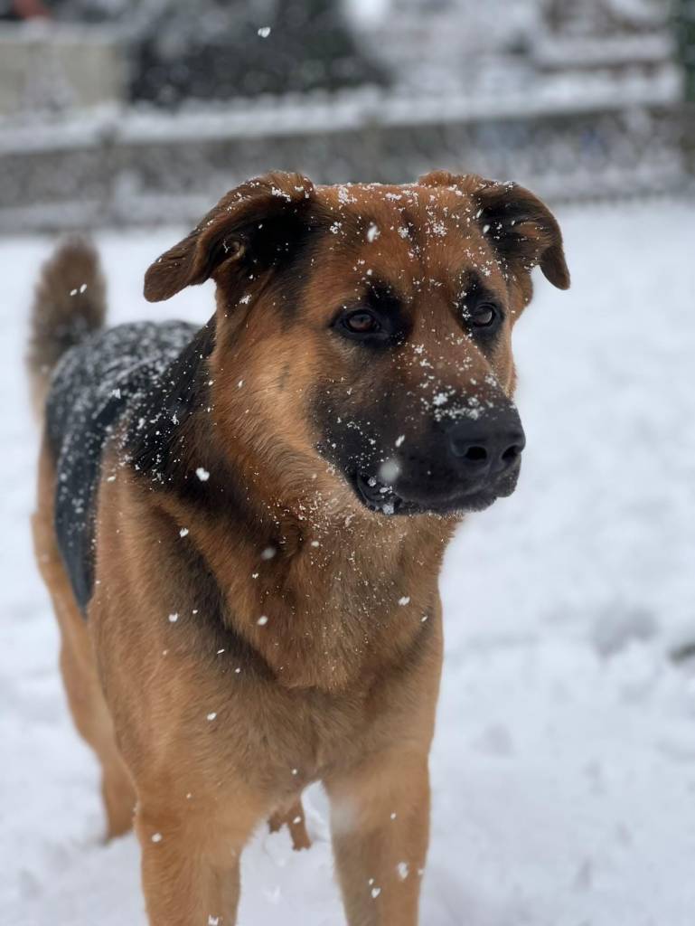 Er kam als Welpe mit Mama Darcy und seinen Geschwistern ins Tierheim. Im Februar 2022 wurde er adoptiert und genießt sein Leben vollkommen. Er ist zu einem schönen, glücklichen Hund geworden, der voll und ganz angekommen ist