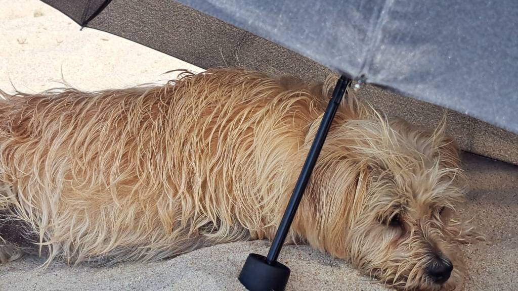 er genießt die Sonne und ist unser persönlicher Beach Boydyguard