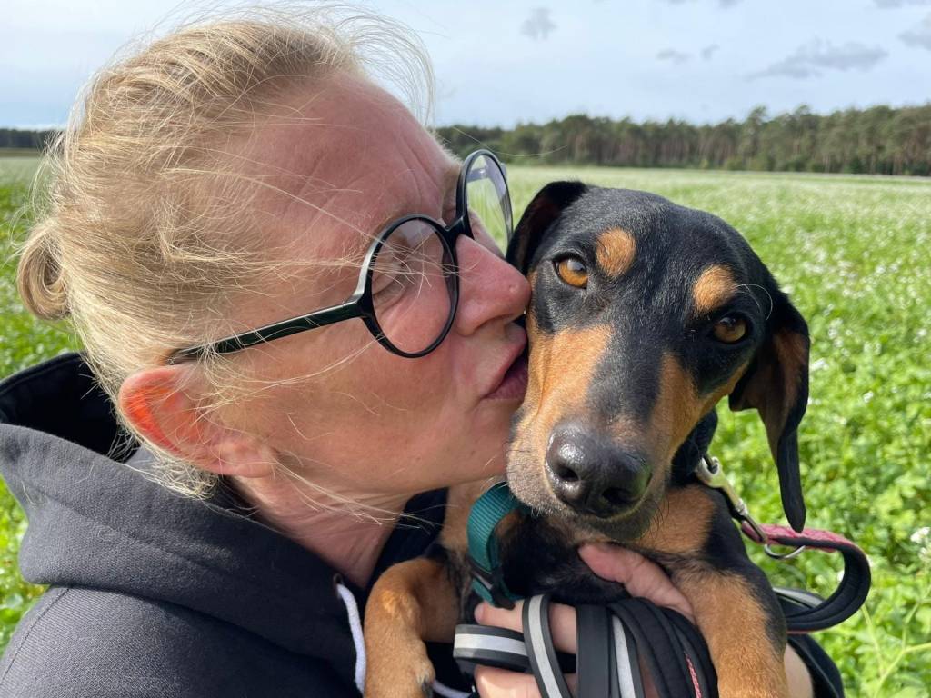 „Wollte mal Grüße von Nessy senden. Sie ist mit Kraft und Saft angekommen und nach viel Training macht es mega Spaß mit ihr. Sie ist mega energiegeladen und ein richtiger Charakterhund. Sie ist mega witzig und sehr lieb.“