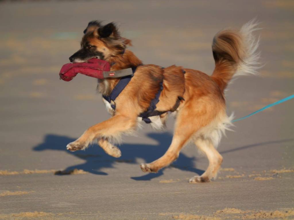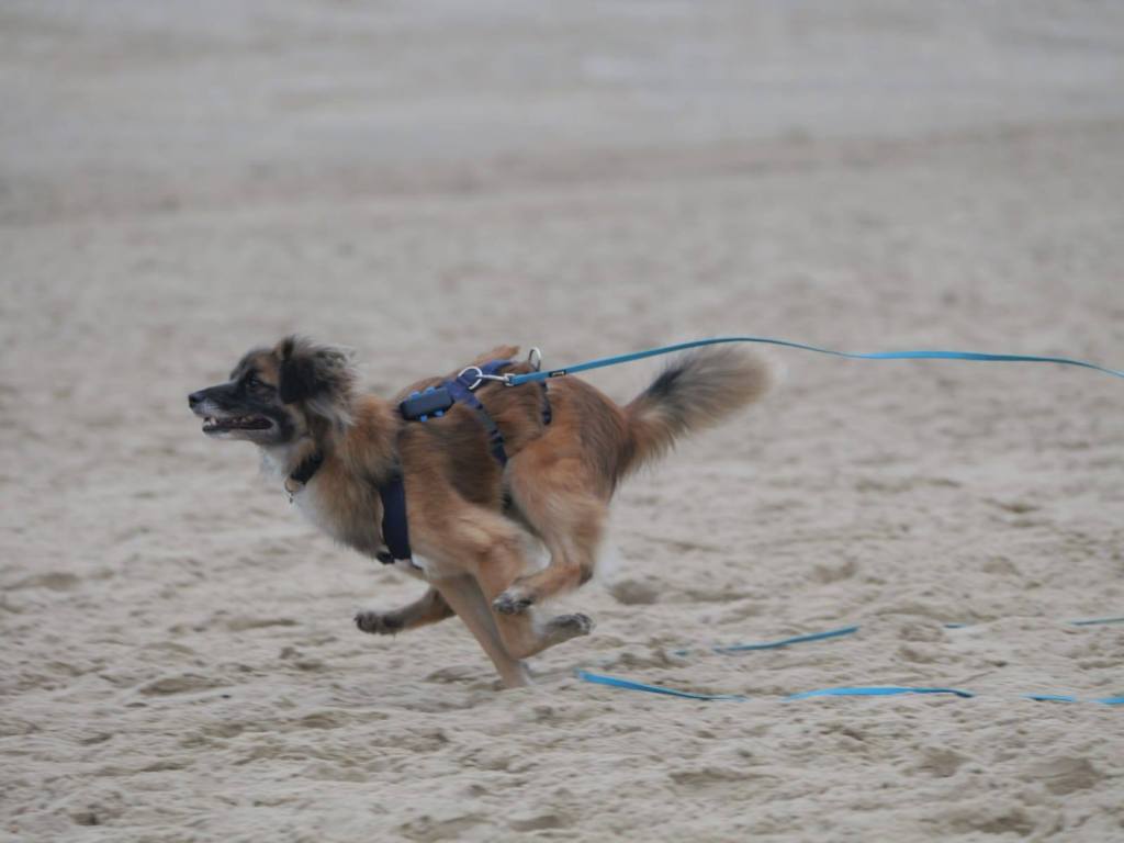 Die kleine Hündin ist vermutlich das erste Mal in ihrem Leben am Strand und findet es echt klasse!