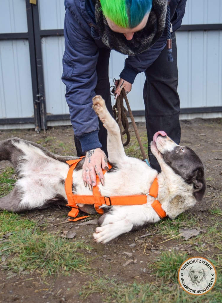 Abseits davon ist sie ein wahrer Schatz. Wenn man an ihren Zwinger kommt, strahlt sie übers ganze Gesicht, legt sich sofort hin und bietet vertrauensvoll ihren Bauch zum Kraulen an. Diese Momente zeigen, wie sehr sie sich nach Nähe sehnt – und wie bereit sie ist, zu vertrauen.