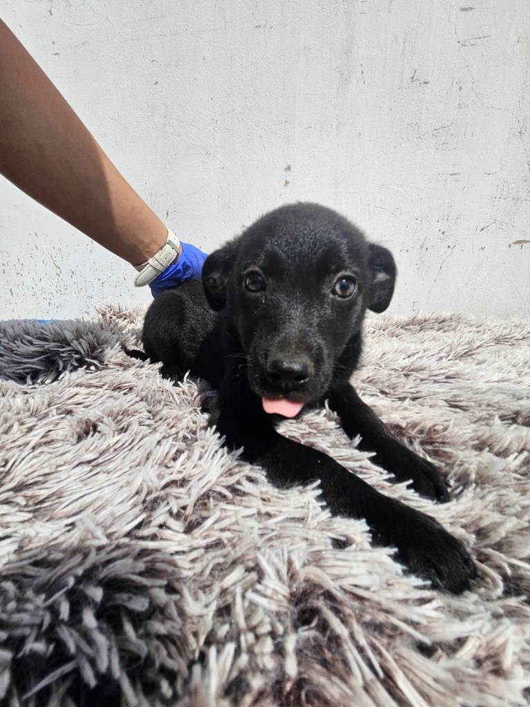 Marie wurde mit ihrer Mama und 3 Geschwisterchen an einem Waldstück von Spaziergängern entdeckt. Ihre Mama war so ängstlich, dass eine Mitnahme nicht möglich war. Als unser Partnertierheim ankam, um die Hundefamilie zu sichern, suchten sie bereits Zuflucht an einer Ruine. Dort konnte die 5köpfige Familie gesichert werden.
