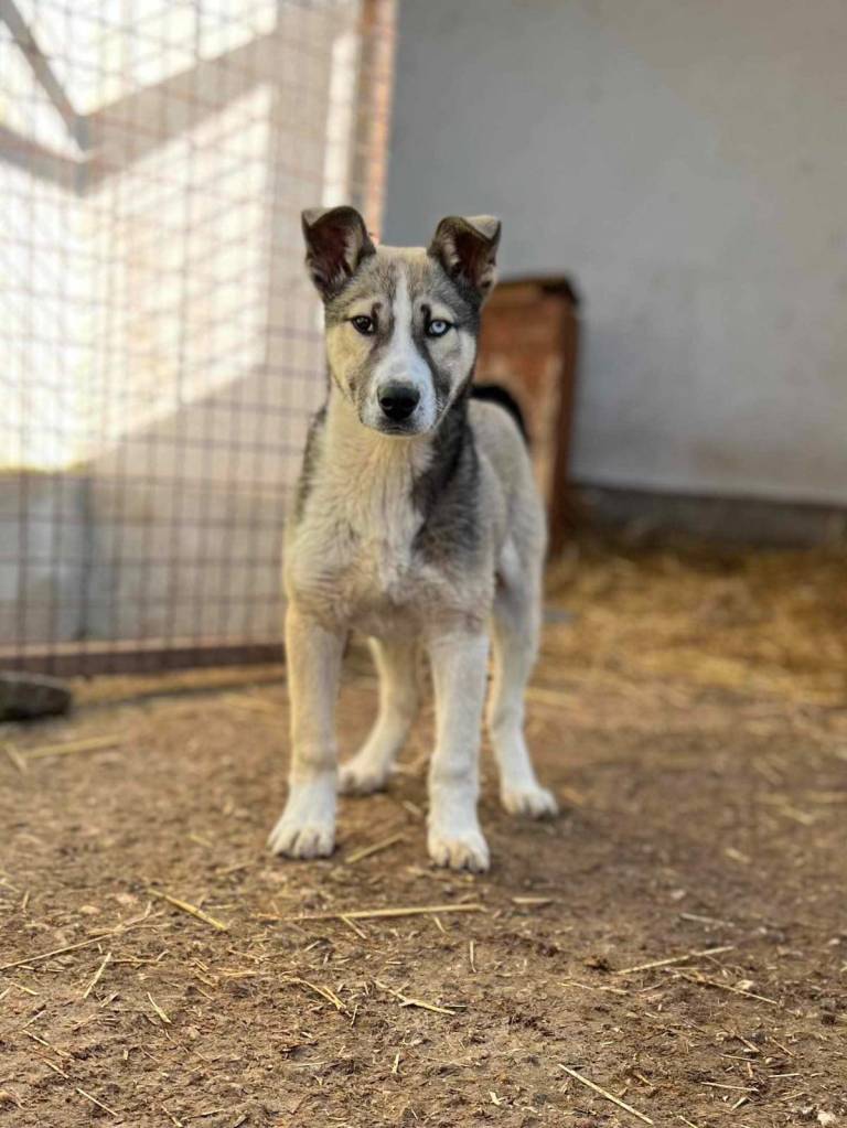 Nanuk ist ein wunderschöner Rüde, augenscheinlich ein Siberian Husky Mischling. Seine Eltern scheinen jedoch von größerem Kaliber gewesen zu sein und irgendetwas anderes robustes hat mitgemischt, denn Nanuk hat bereits mit 9 Monaten 60cm Schulterhöhe und 30-35 Kilo Gewicht! Aufgrund dessen werden standhafte Menschen gesucht, die sein Gewicht und seine Größe nicht unterschätzen und ihn halten können. Nanuk ist eine wahre Frohnatur, sehr offensiv und aufgeschlossen sowohl Menschen als auch anderen Hunden gegenüber. Er ist ein sehr sozialer Hund und im Umgang mit großen und kleinen Artgenossen sehr freundlich und neugierig. Pöbeleien geht er souverän aus dem Weg. Nanuk hat Power und der anteilige Husky möchte definitiv gefördert werden. Er ist sehr sportlich und agil und benötigt Menschen die sich viel mit seiner körperlichen Auslastung befassen.