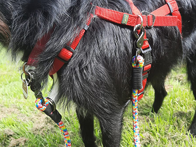Unsere Hunde müssen grundsätzlich mindestens 12 Wochen lang doppelt gesichert werden, mit Sicherheitsgeschirr, Halsband und doppelter Leinenkombination. Bei besonders ängstlichen/unsicheren Hunden treffen wir Sondervereinbarungen. Das Sicherheitsgeschirr muss jeder Hund mindestens 6 Monate tragen. - Sicherheit im Haus: